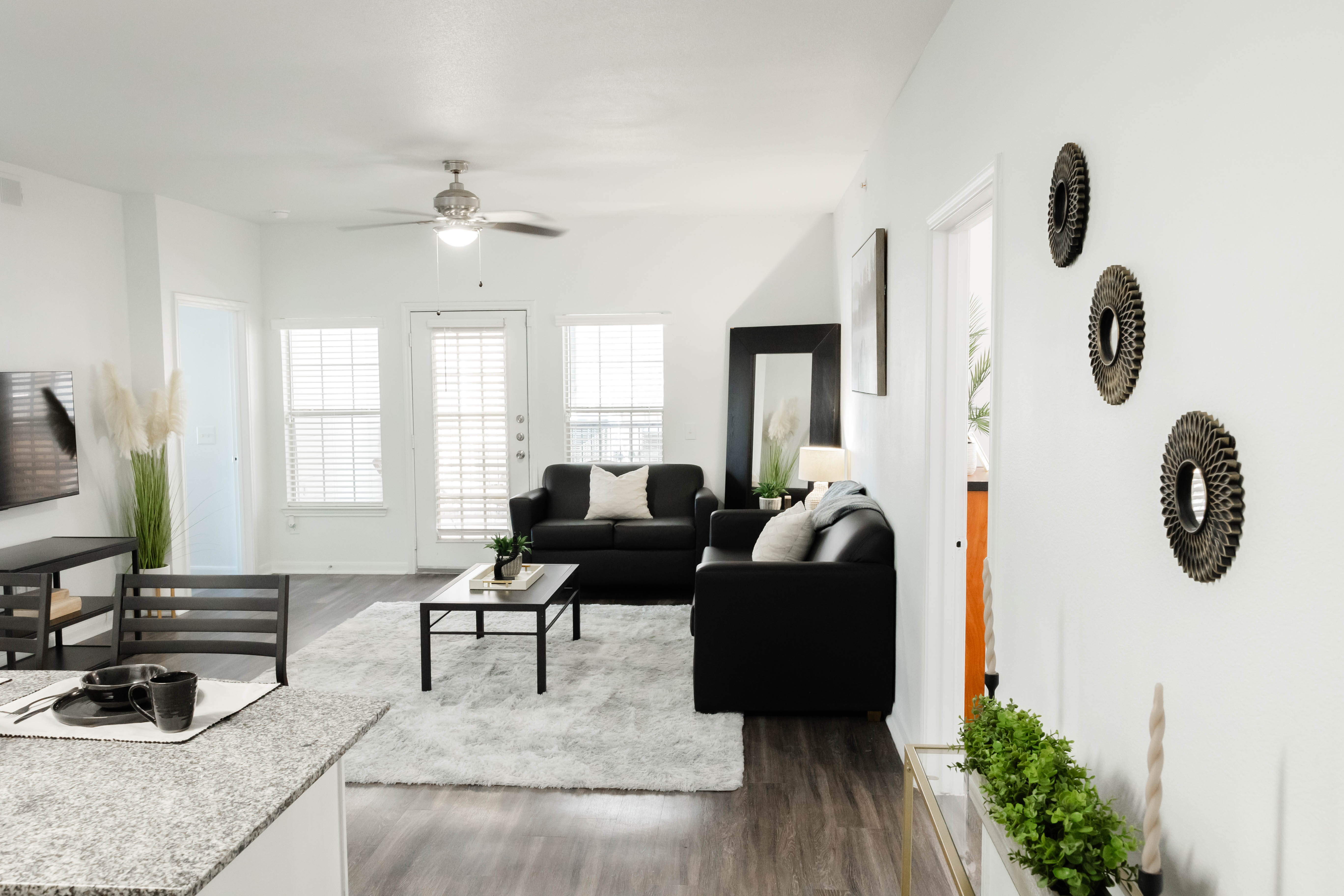 - 2-inch faux wood blinds for a clean, modern feel